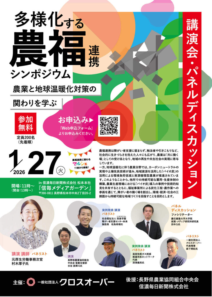- 多様化する農福連携シンポジウム 開催します農業・福祉・環境。一見すると別々に見える分野ですが、いま「農福連携」という形で大きな可能性が広がっています。本… 続きを読む: 多様化する農福連携シンポジウム 開催します
